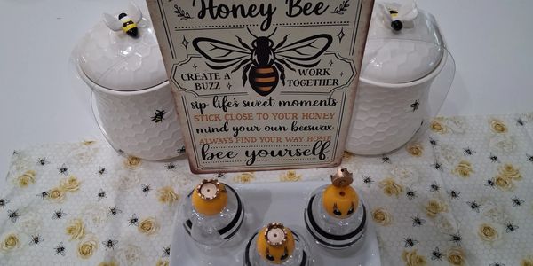 I saw all the bee merchandise ... plates, sheets, towels, rugs, artwork, bee grateful, bee kind, etc.